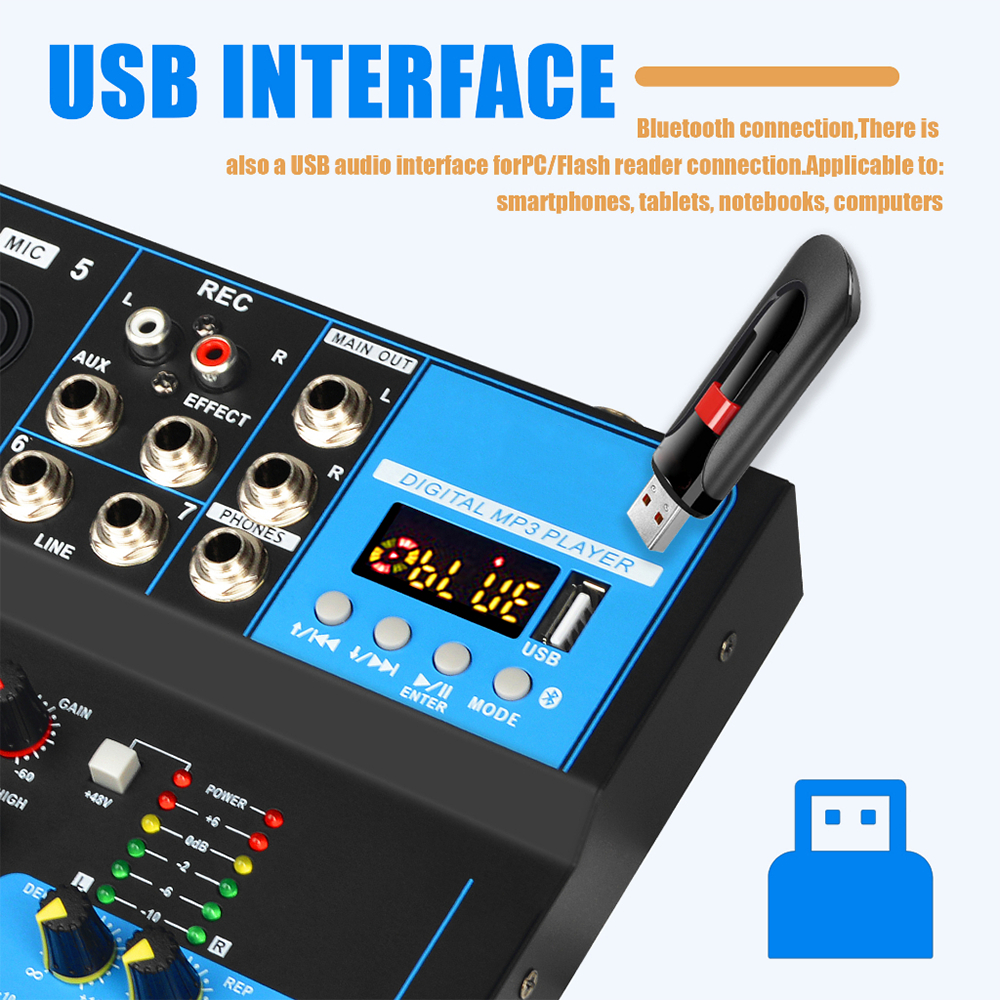 [Mall] BOMGE F7 Audio Mixer 17V AC USB DJ Sound Mixing Console MP3 Jack 48V Power SoundCard Mixing Console MP3 Jack 48V