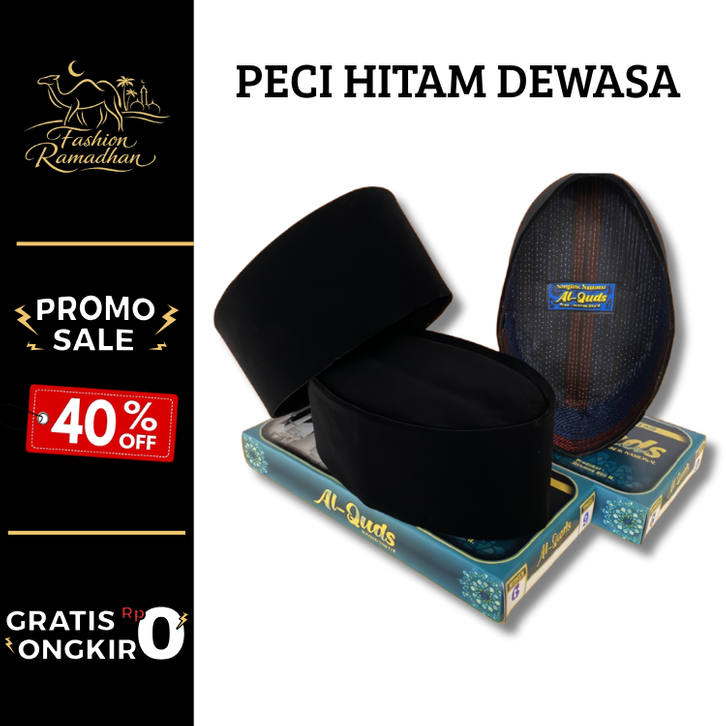 Peci Hitam Dewasa Songkok Hitam Polos Non AC Anti Air Multifungsi Anak Sampai Dewasa