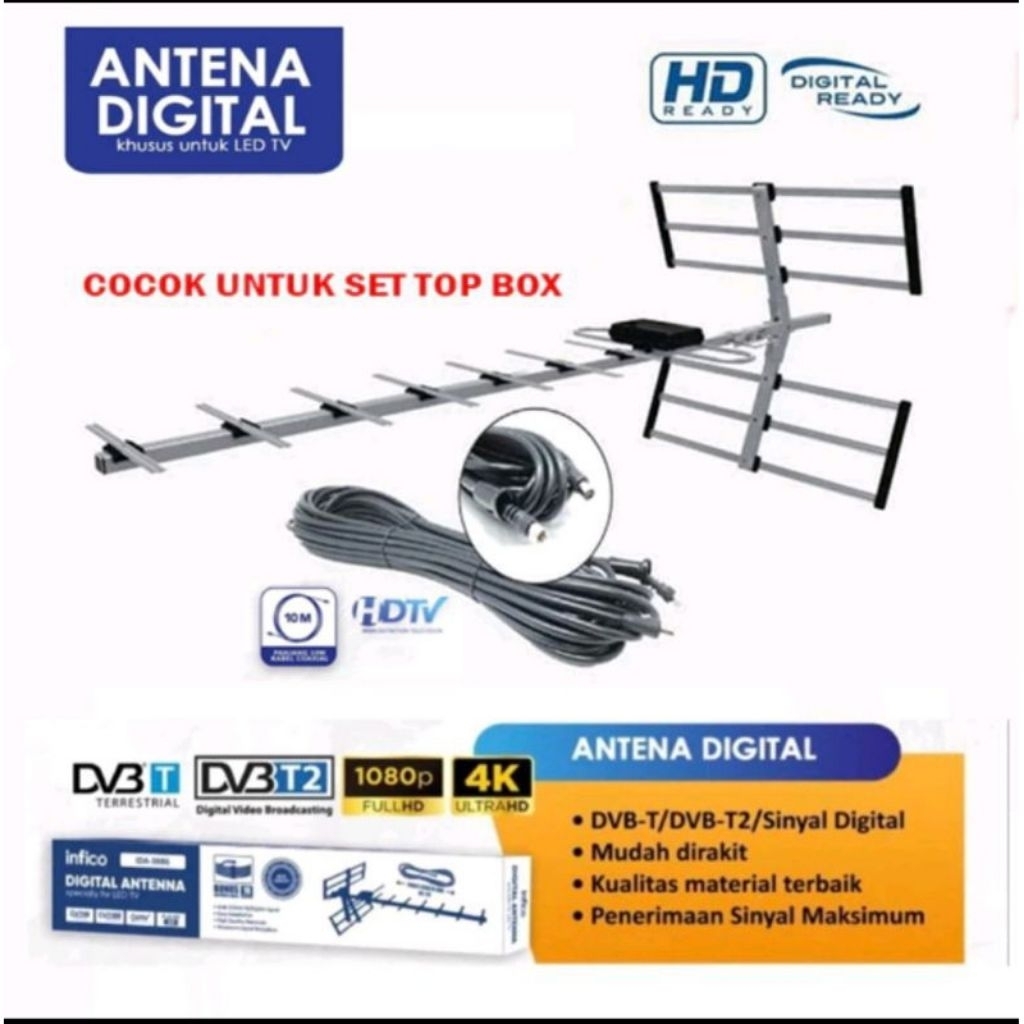 Infico Antena Digital TV DVB-T2 IDA-321 & IDA-3886 | 1080p 4K UHD | Kabel 10M | Indoor Outdoor | Smart Chip | Sinyal Kua