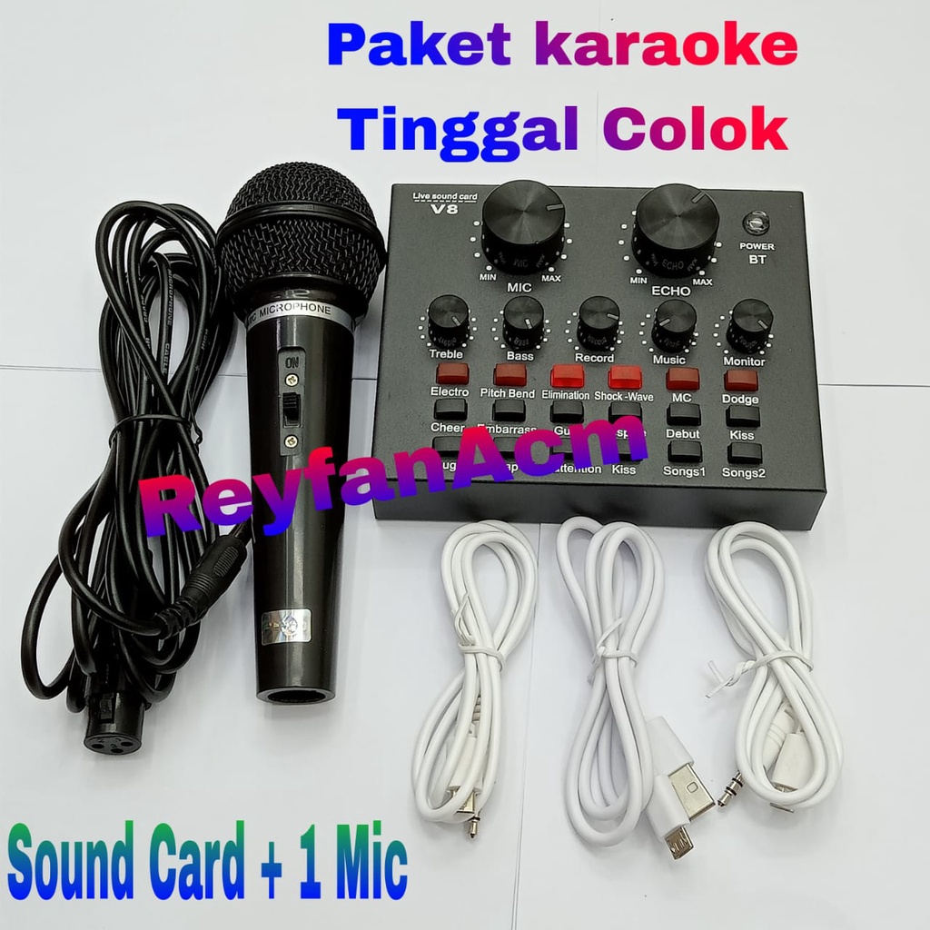 [Mall] Satu Paket Sound Card V8 Live Broadcast Mixer Bluetooth Audio USB External / Soundcard Mixer Audio Karaoke HP
