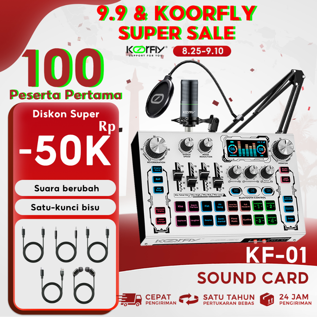 [Mall] Koorfly Kf01 Paling Professional Live Soundcard Live Mixer - 48V Recording/4 DIY Efek Suara/LED Layar - Fungsi Ya