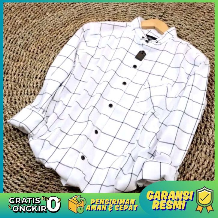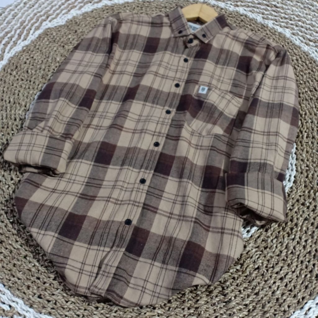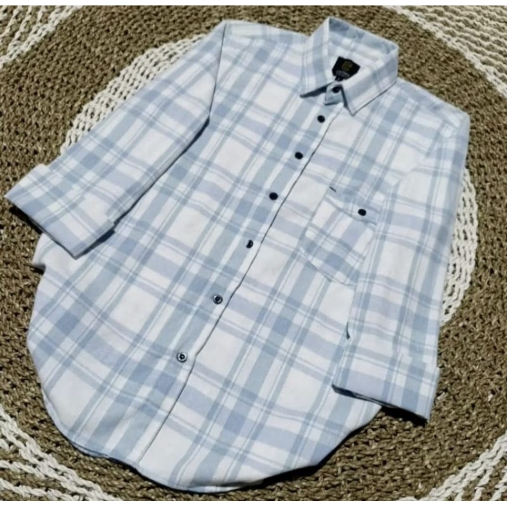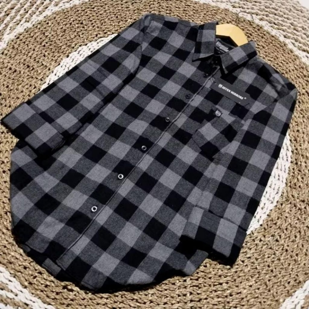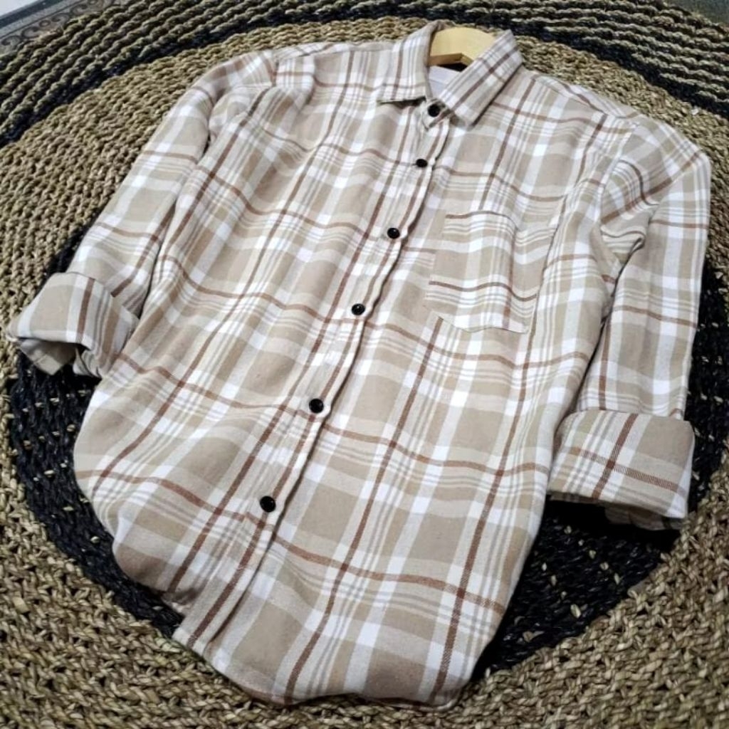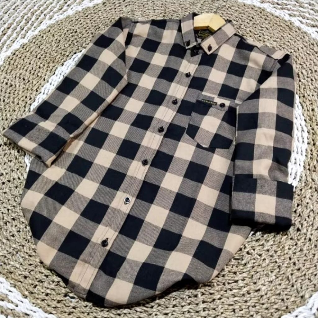 kemeja flanel kotak-kotak lengan panjang unisex premium