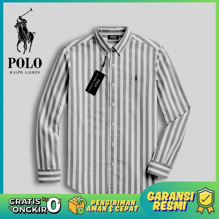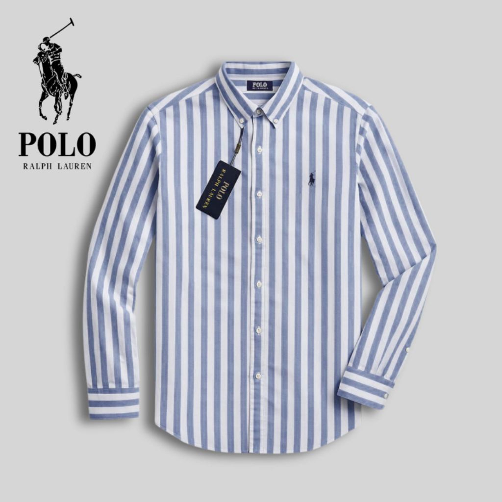 kemeja lengan panjang pria polo*s pria salur terbaru dan dan terlaris//kemeja lengan panjang pria logo depan bordir baha