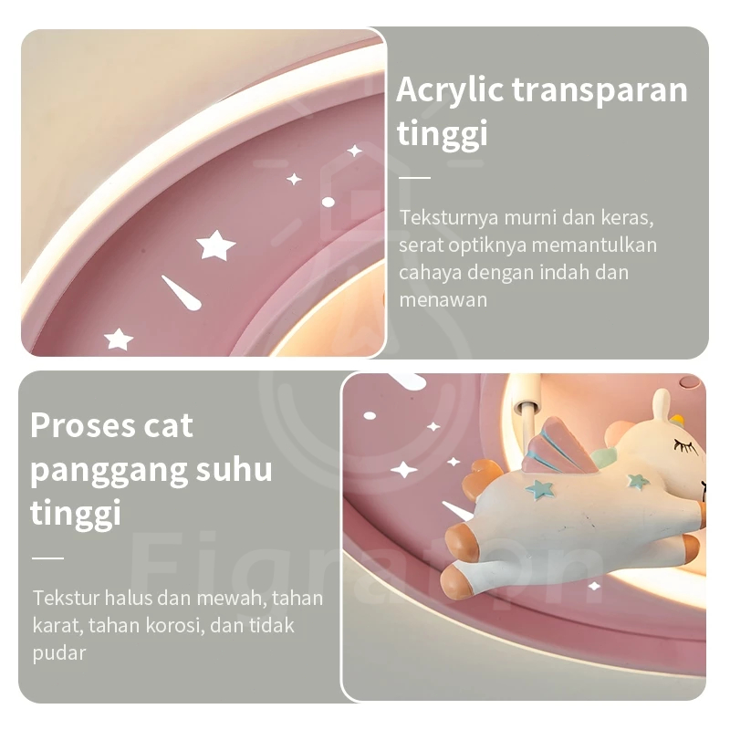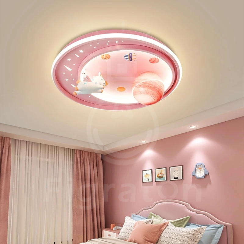 [Star]Lampu Plafon Anak LED - Desain Unicorn Lucu & Pink, Lampu Kamar Tidur Princess, Cocok untuk Kamar Anak Perempuan,