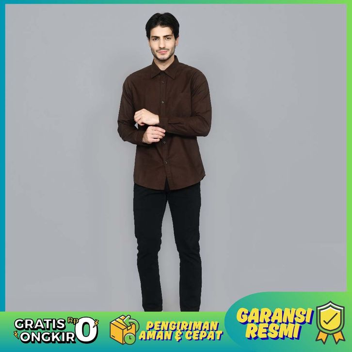 Haf Amerta Mahogany Long Sleeve Kemeja Katun Linen Premium / Kemeja Pria Lengan Panjang