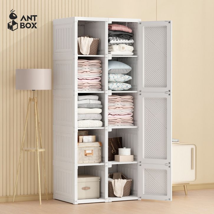 ANTBOX Lemari Baju Putih 10 Box 590L Lemari Baju Minimalis Kabinet Lipat Lemari Multifungsi