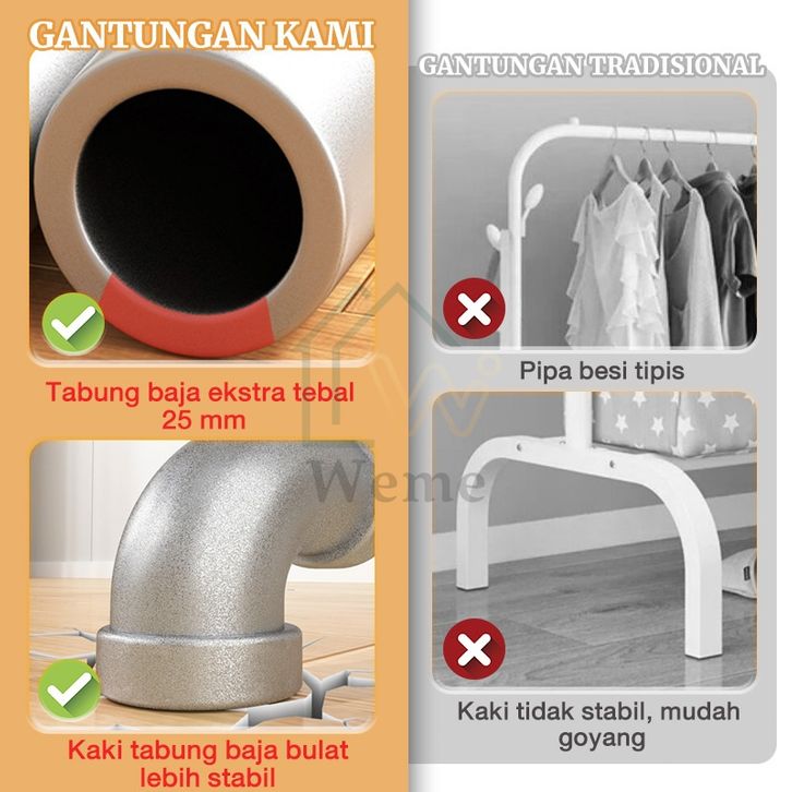 Weme Stand hanger Tabung baja Rak Gantungan Baju Besi Jemuran Baju Besi Stainless Gantungan Baju Minimalis Stand
