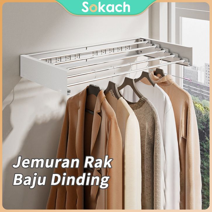 ✨READY&READY✨Jemuran Rak Baju Invisible Dinding Lipat Baju Tempel Dinding Stainless Steel Pakaian Basah Lipat Rak