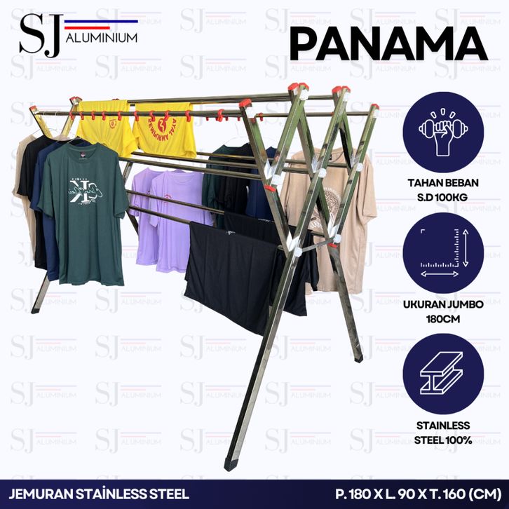 Jemuran Stainless Steel Jumbo PANAMA - Jemuran Baju / Pakaian / Rak Handuk - Jemuran Bayi - Palang 9 Tahan Beban