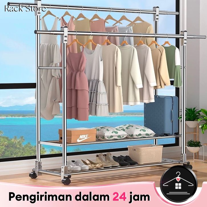 Stand Hanger Stainless Steel Jemuran Baju Double Serbaguna