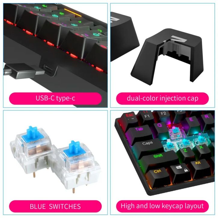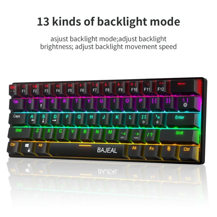 Keyboard Mechanical Bluetooth and USB wired 60 blue switch 61 Key Rainbow Light Charging Mechanical Gaming Keyboard for