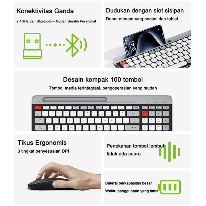 Acer OKR 215 Set Keyboard Mouse Wireless Dual M0DEe 2.4GHz + Bluetooth - 100 Produk Baru & Original