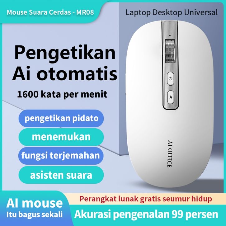 RULINK MR08 Mouse AI Cerdas Pengenal Suara Wireless and bluetooth Dengan 6 Tombol, Receiver USB,Silent Click, Rechargea