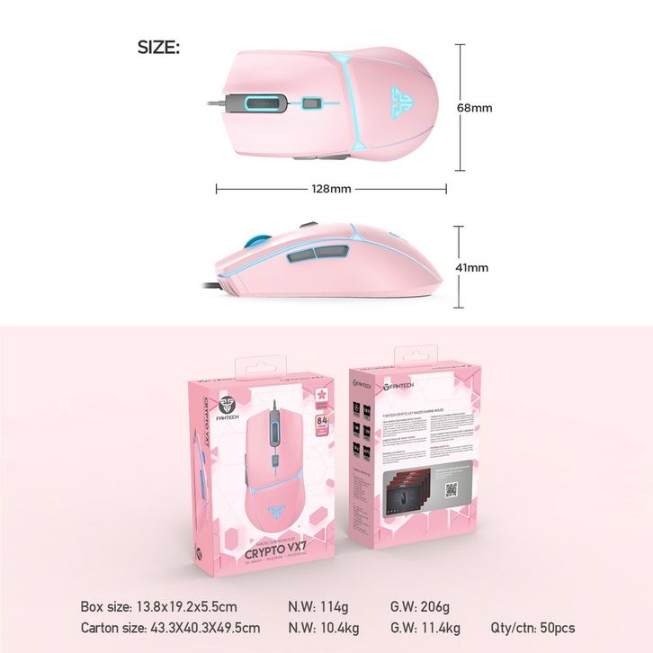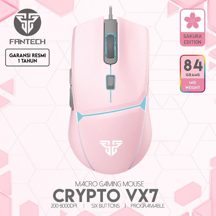 Fantech CRYPTO VX7 Sakura Edition Cool Style Pink Color Mouse Gaming Macro 8000 DPI 6 Button Pro9r4mable