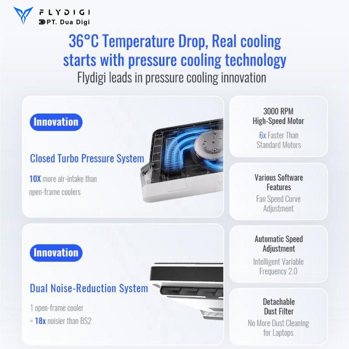 Flydigi Supercharged Laptop Cooling Fan BS2 - Innovative Closed Turbo Cooling Temperature Control