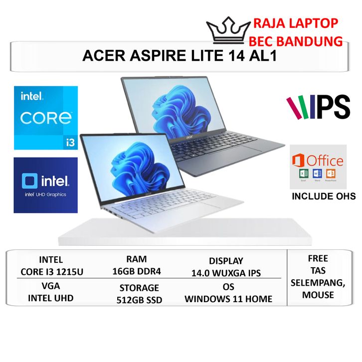 Laptop Acer Aspire Lite 14 AL1 Intel Core i3 Gen 12 Ram 16GB SSD 512GB 14 IPS Windows 11 Home + OHS