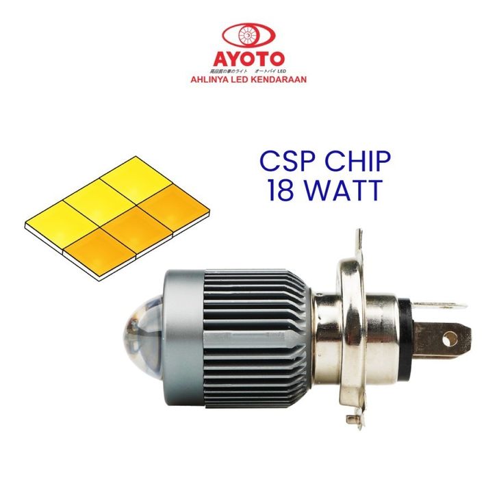 Lampu LED Depan Utama Motor Mobil AYOTO M3A Pro H4 Hi/Lo AC DC PNP 18W + 18W Garansi