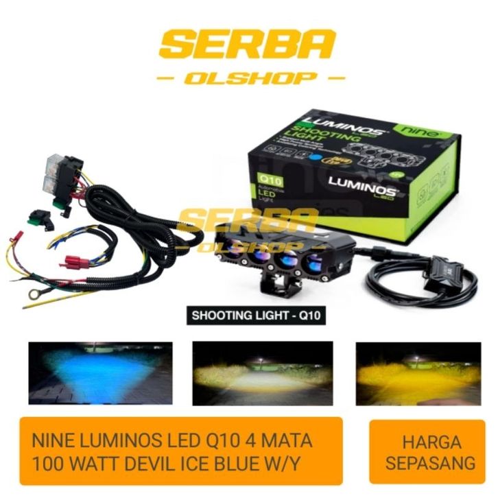 lampu sorot NINE LUMINOSLED SEPASANG LAMPU SOROT PAKET LENGKAP + RELAY Q10 DEVIL BLUE LASER Q9S BLUE LENS DAN Q9 3 MATA
