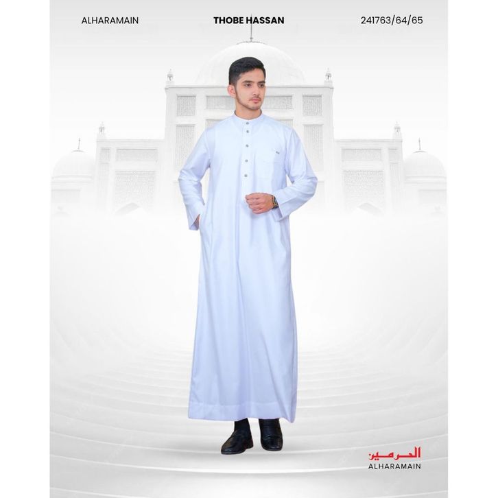 TERMURAH AL Haramain Series Semi Wol Thobe Hassan Jubah / Gamis Pria Dewasa (241763/64/65) | Putih udogc