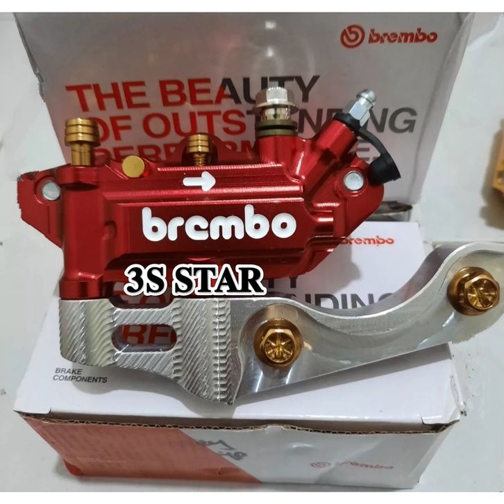 PAKET KALIPER MONOBLOK 4 PISTON + BAUT KALIPER 4PCS + BREKET KALIPER RX KING VIXION NOUVO SCORPIO MEGA PRO R15 OTOMOTI