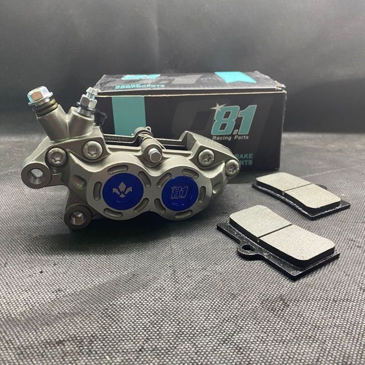 KALIPER BIGPOT 8.1 RACING PARTS 4PISTON 4P KIRI AXIAL BABET K0IN CNC LOGO MATAHARI + KAMPAS CADANGAN UNIVERSAL PCX 150/