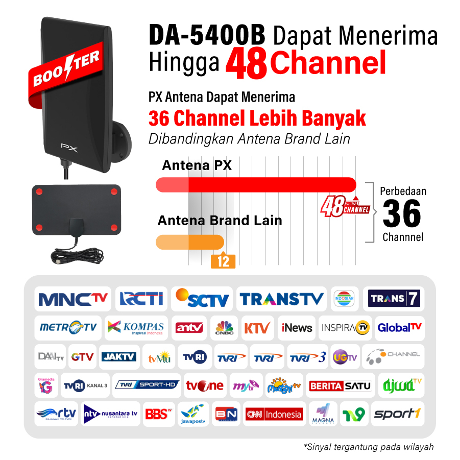 Antena TV Digital Analog + Kabel 12 Meter & Booster Indoor Outdoor PX DA-5400B