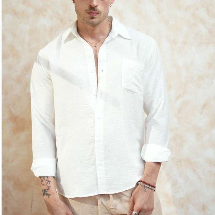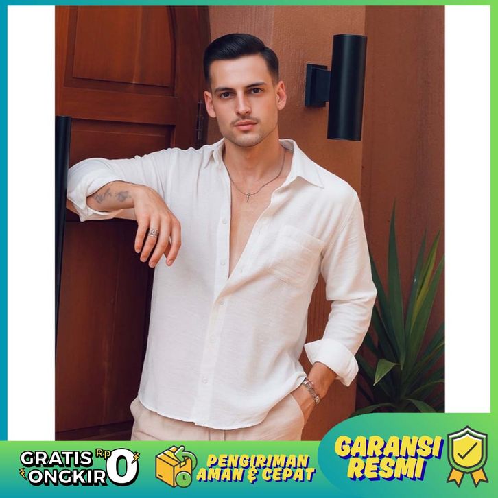 BEACHWELL Kemeja Pria Linen JODA Series Kemeja Linen Lengan Panjang Putih White All Varian