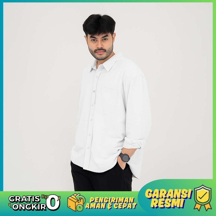 Kemeja Polos Oversize Pria Lengan Panjang DYD Pique Putih White Otaco
