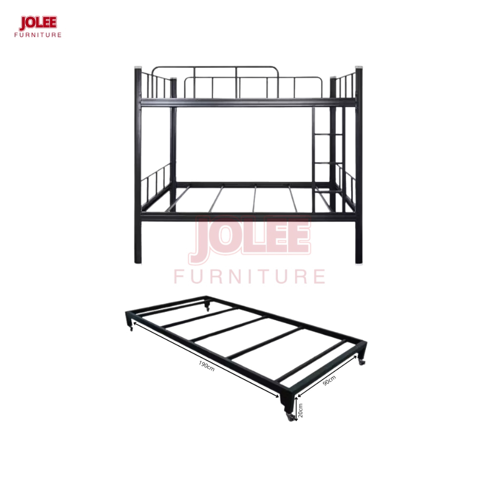 Tempat tidur susun besi, susun atas sebagai tempat tidur, susun bawah sebagai lemari+rak buku+meja