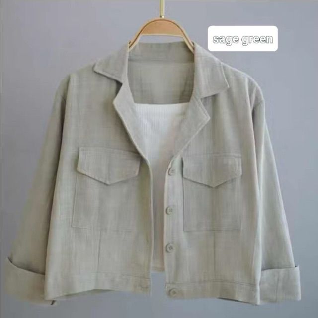 Kemeja Outher Wanita Linen Kantong Depan Basic Shirt / Kemeja Crop Top Wanita Lengan Panjang Korean Style