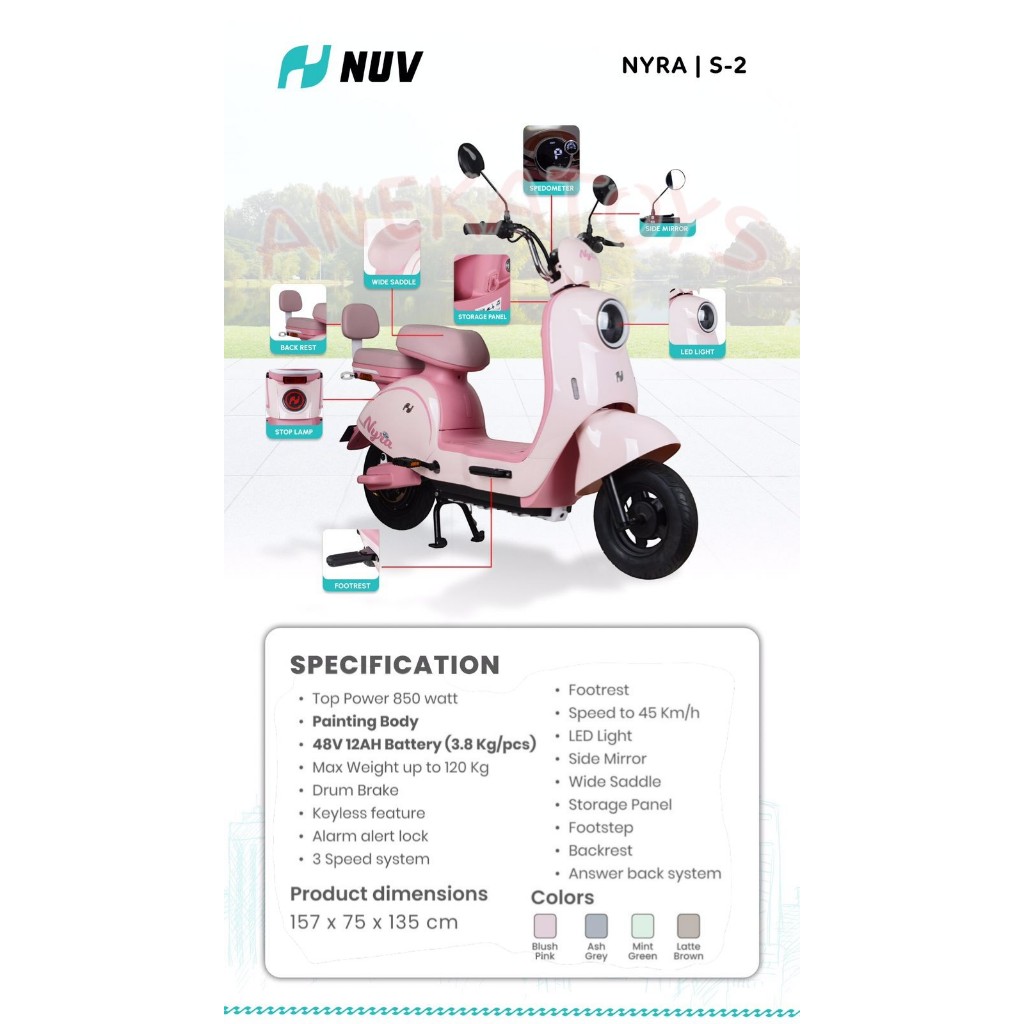 Sepeda Listrik PMB Nuv Nyra S2 | E-Bike 850W Baterai SLA 48V12Ah Bergaransi Resmi
