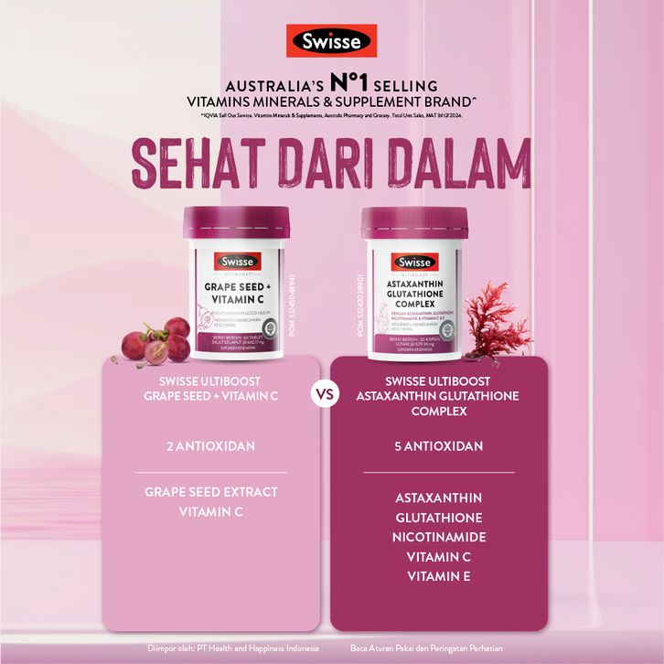 Suplemen Pencerah Kulit Swisse Ultiboost Astaxanthin Glutathione Complex Multivitamin Meratakan Warna Kulit