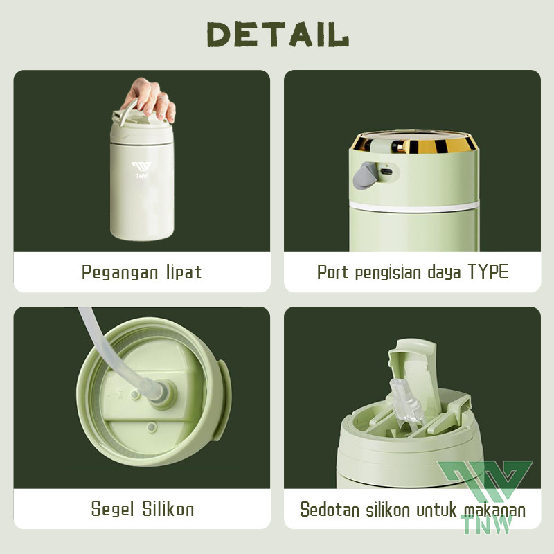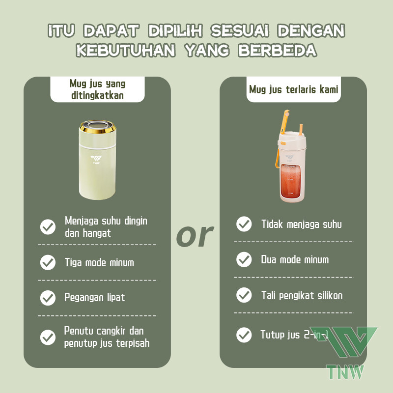 TNW KJ10 2 In 1 Juice Blender Portable Botol Stainless Steel Vacuum Insulated Thermos Tumbler Ice Crusher Mixer Mini Jui