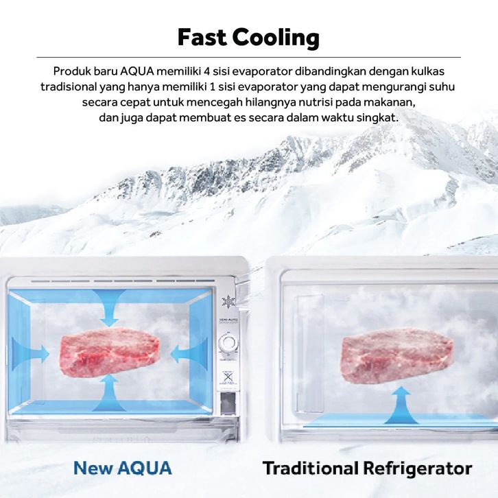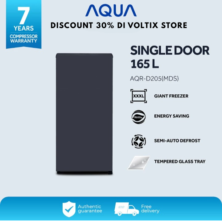 Kulkas Pendingin AQUA Elektronik AQR-D205(MDS), New 1D, PCM, Direct Cooling, 165L, R600a - Dark Silver