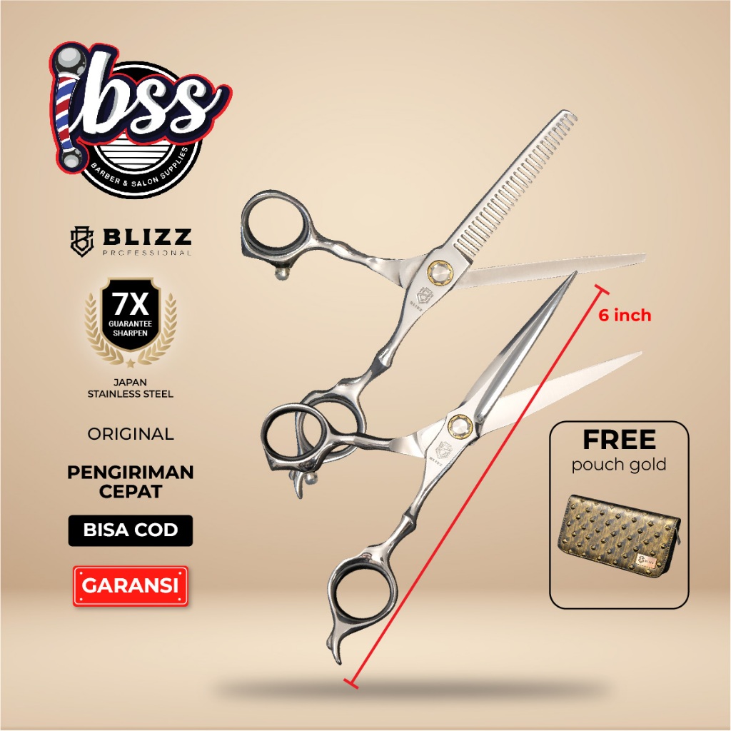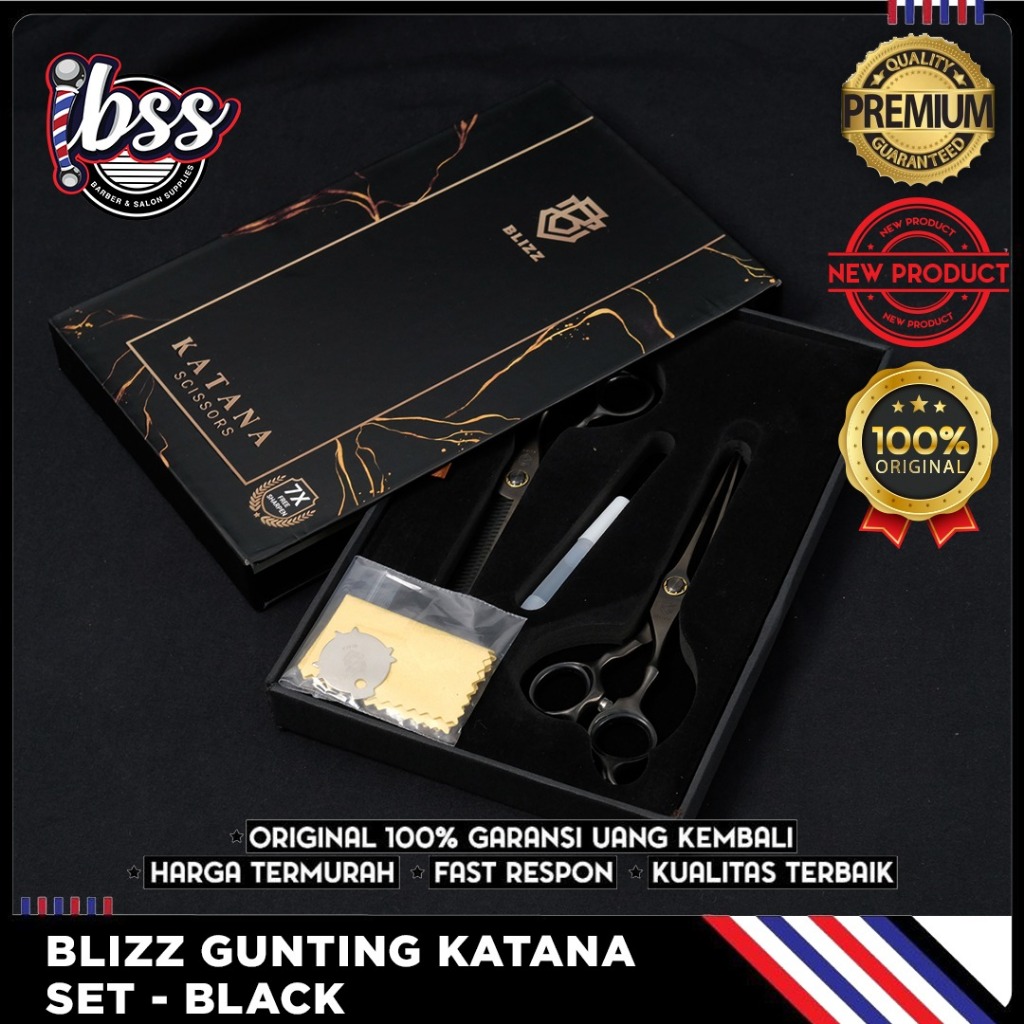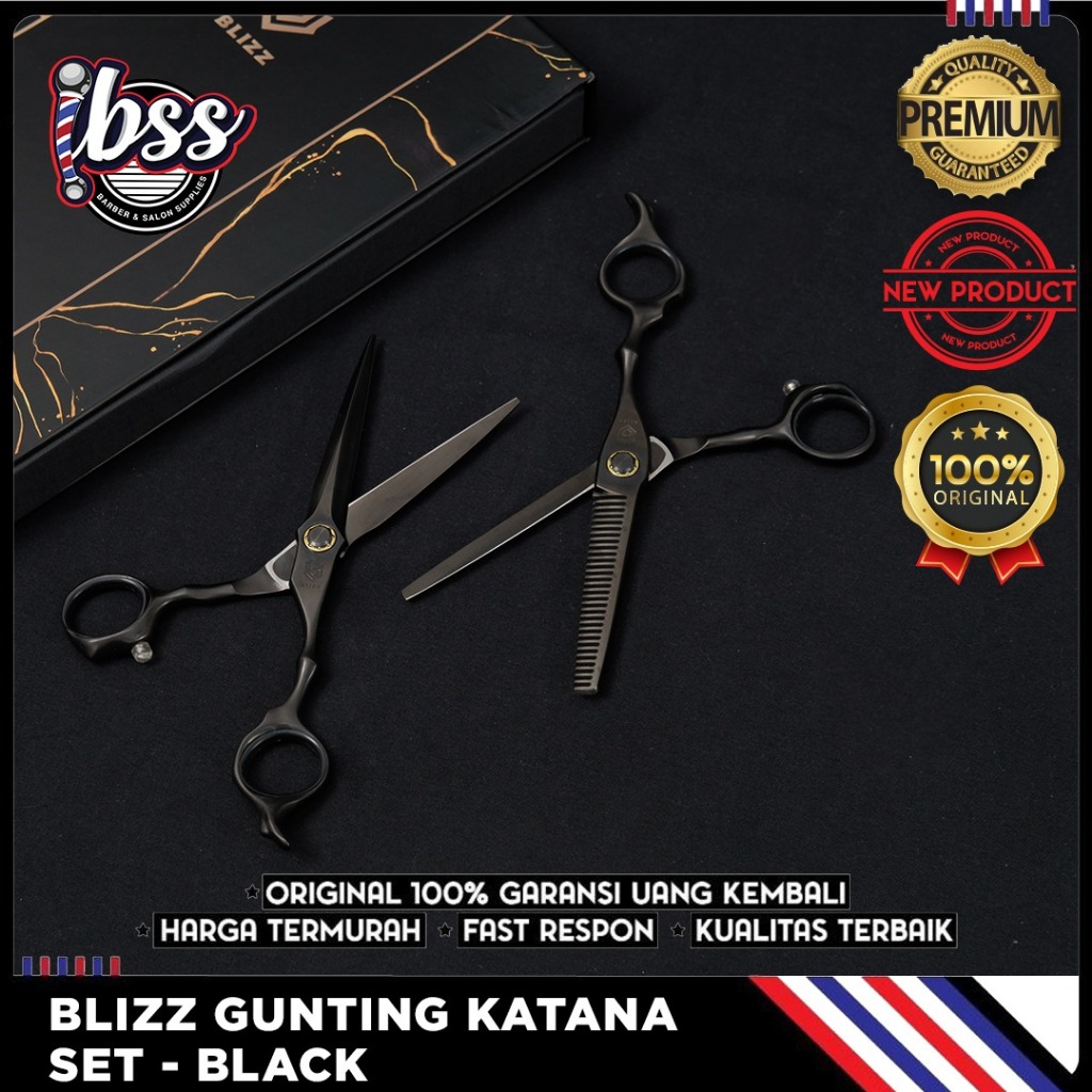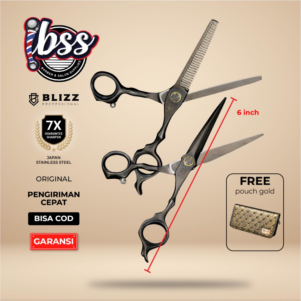 GUNTING CUKUR BLIZZ SCISSORS KATANA SET JAPANESE BLADE - GRATIS POUCH GOLD / GUNTING RAMBUT BARBER & SALON