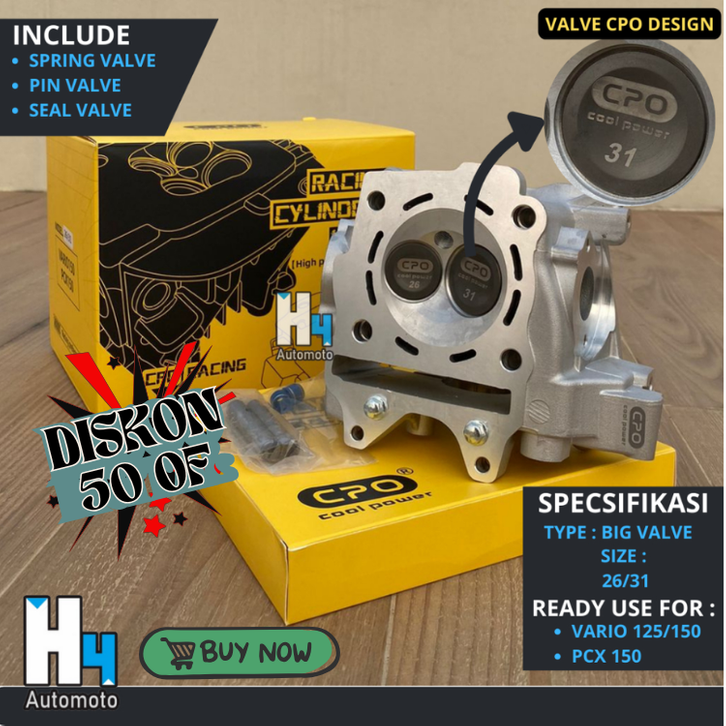 cylinder head blok head vario 150 125 pcx 150 adv 150 klep besar 26 31 mm original cpo cool power