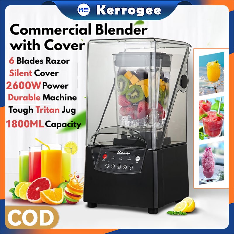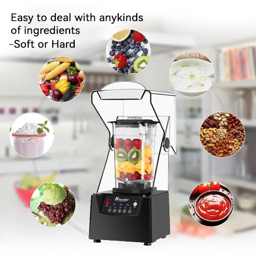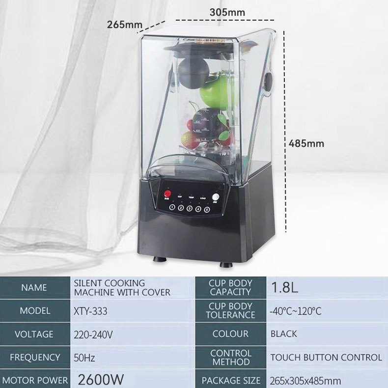 High Speed Silent Blender 2600W Silent Noise Reduction Hood digunakan untuk smoothie jus es yang dihancurkan, menggiling