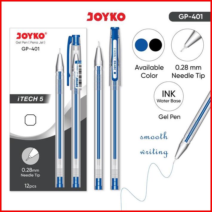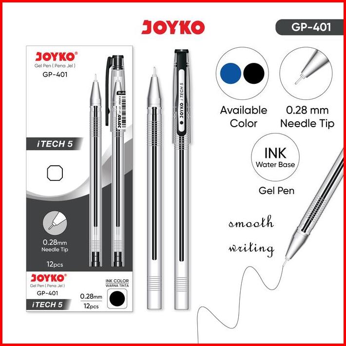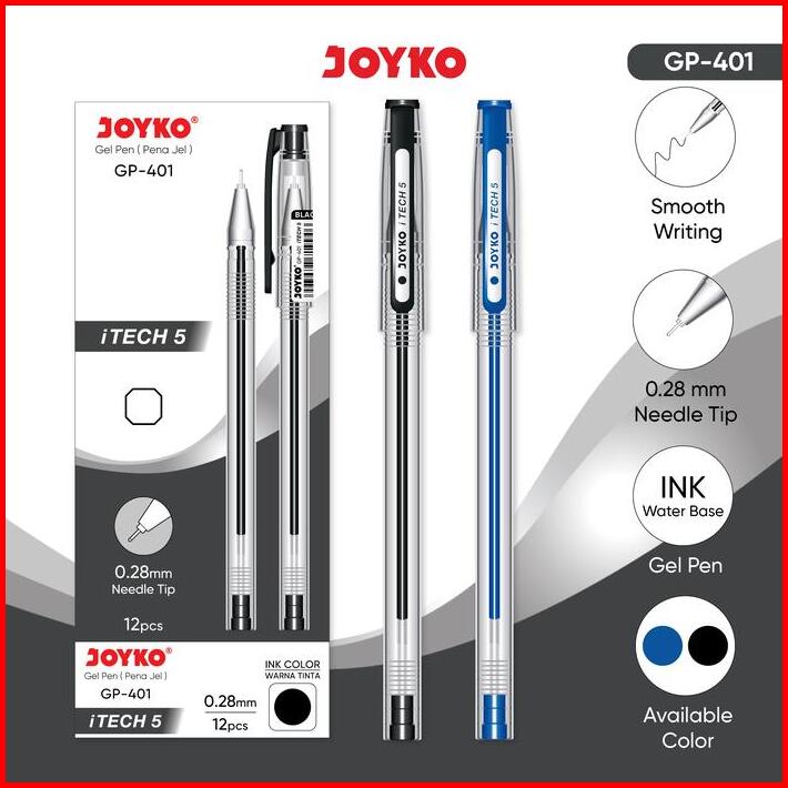 Joyko Pulpen Gel 1 Pack Gp-401 I-tech 0.28mm Isi 12 Pcs
