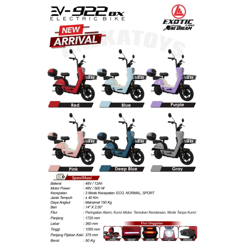 Sepeda Listrik Exotic EV922 BX Baterai Sla 48V/12ah Motor Power 500 Watt Dilengkapi Box Belakang