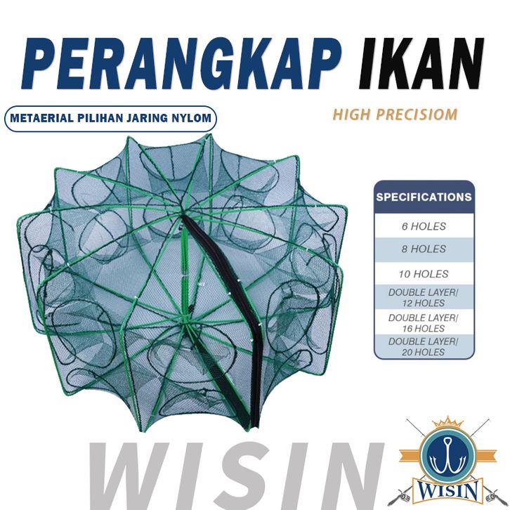 JARING Perangkap Ikan Bubu Payung Multi Hole (6 Lubang-20 Lubang) Jala Pancing Semua Biota Kecil Laut, Danau, dan Sungai