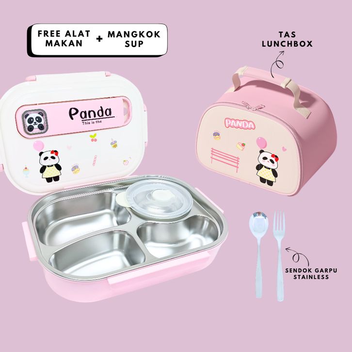 Kotak Makan Anak Anti Tumpah Stainless 316 Lunch Box Set Sekat 4 Kotak Bekal Anak Karakter Shiba Inu Free Mangkok Soup