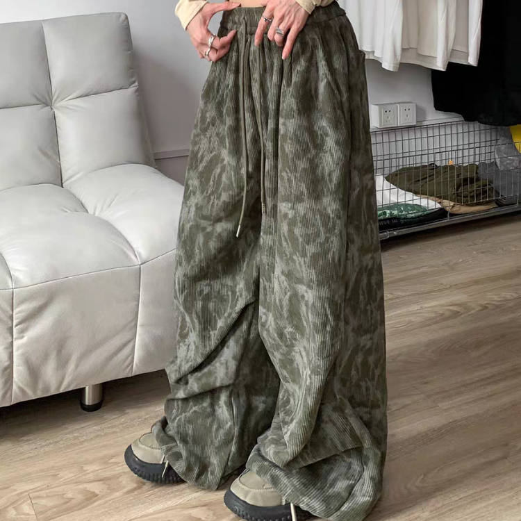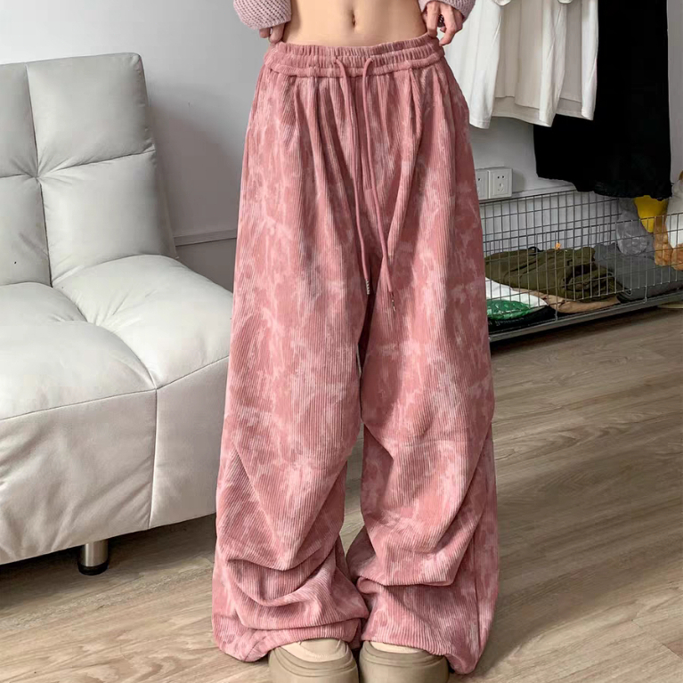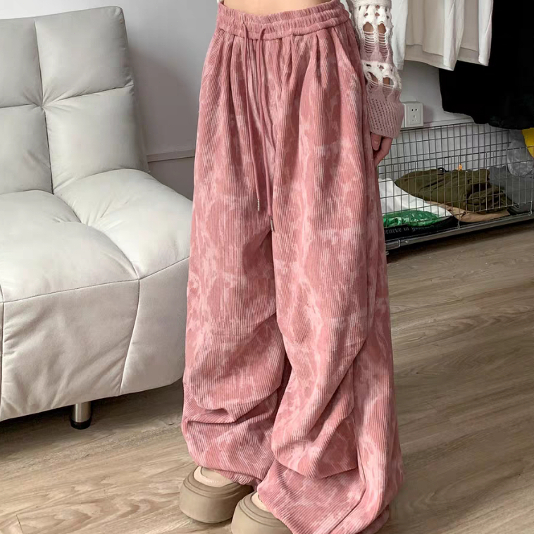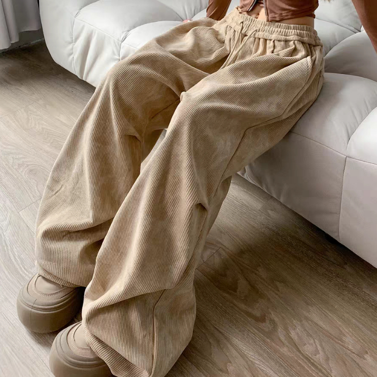 GDTIMA Celana Corduroy Panjang Baggy Kulot Wanita Celana Panjang Casual Pants
