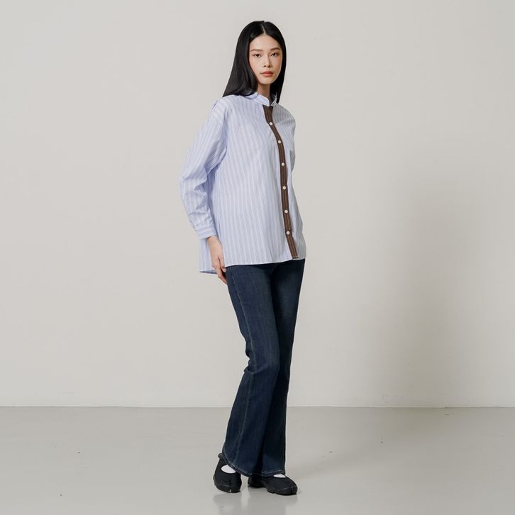 This Is April Baju Atasan Kemeja Terbaru Wanita Lengan Panjang Wanda Top Blue 10094000