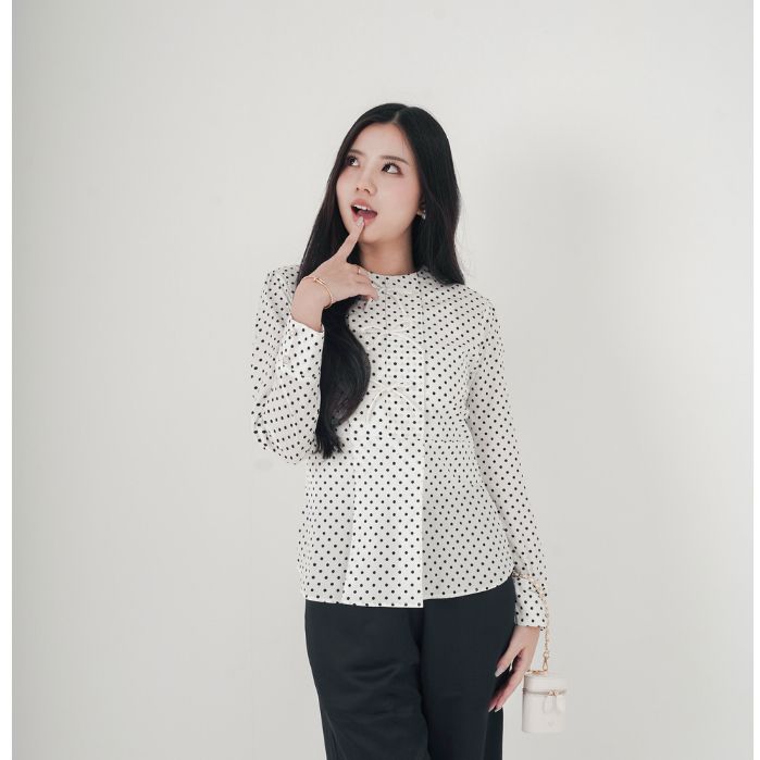 NEW ARRIVAL Setatamuda - Sera Polkadot Top- White Polkadot Top - Coquette Blouse -Atasan Casual Wanita Korean Style - A