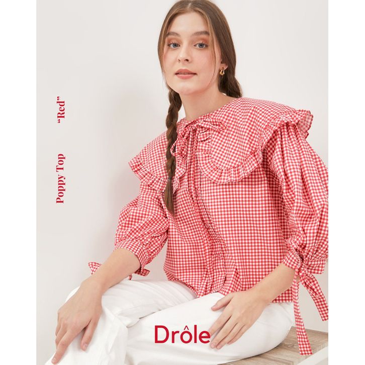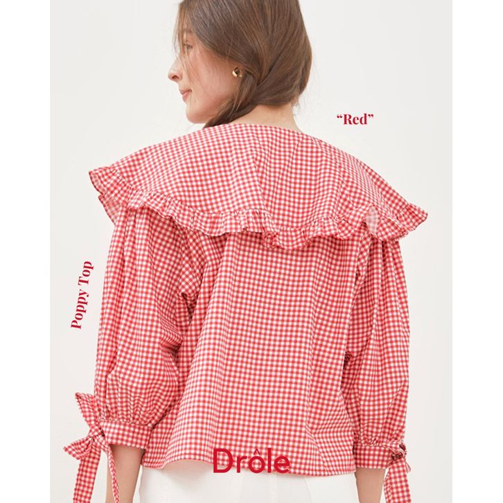 Drole - Poppy Top - Blouse Gingham Atasan Wanita Kerah Lebar