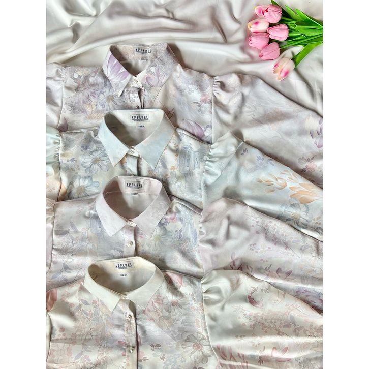 BLOUSE WANITA MOTIF BUNGA FLORAL KOREA VINTAGE ELEGANT KONDANGAN BY APPARELCLOTHES.ID