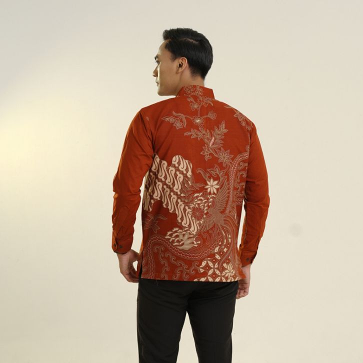 BATIK NINGRATAN MOTIF REKSA TERACOTA Kemeja Batik Pria Lengan Panjang Katun Reguler Lapis Furing Anak Muda Keren Sraga