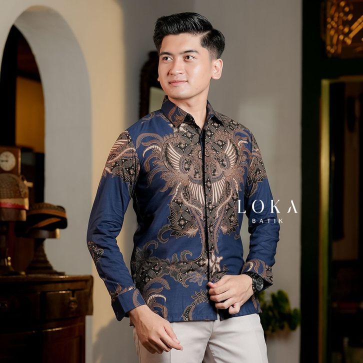 Kemeja Batik Loka Motif Bayu Luhur Pria M0Dern Lengan Panjang Slimfit Furing Premium Katun Primisima
