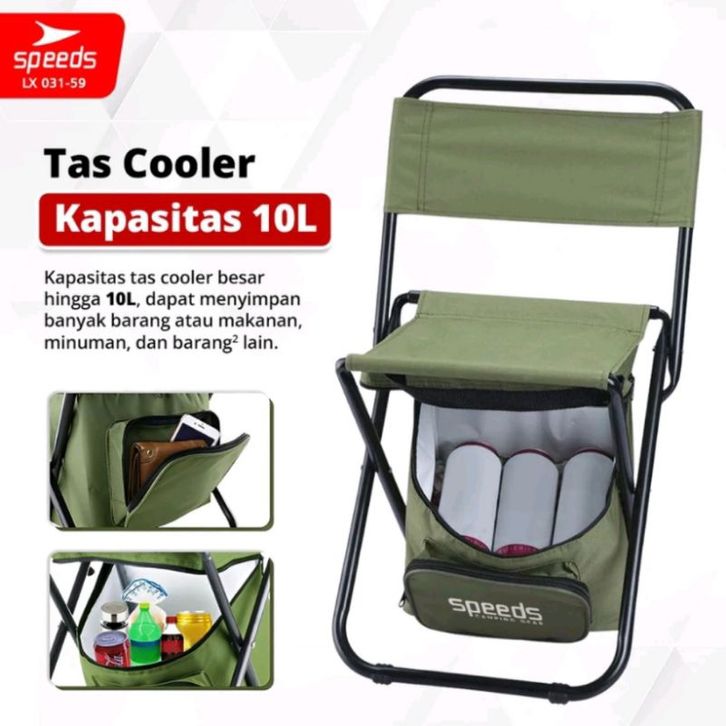 SPEEDS Kursi lipat camping portable outdoor plus tass pendingin multifungsi kursi lipat portable camping outdoor indoor