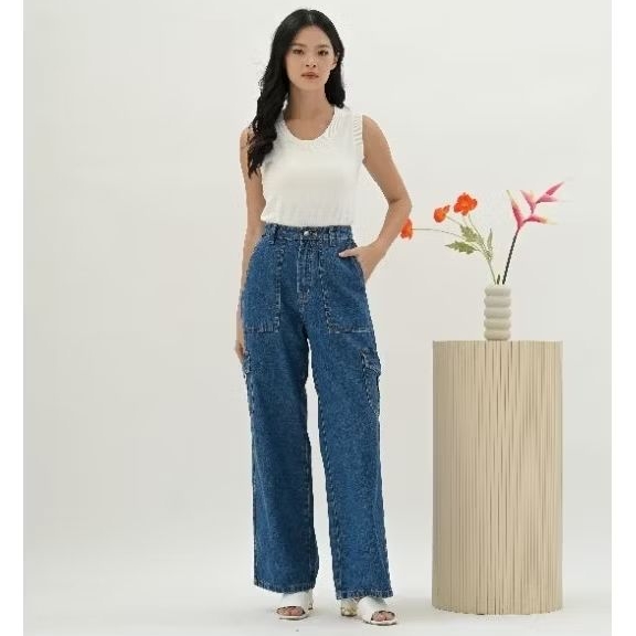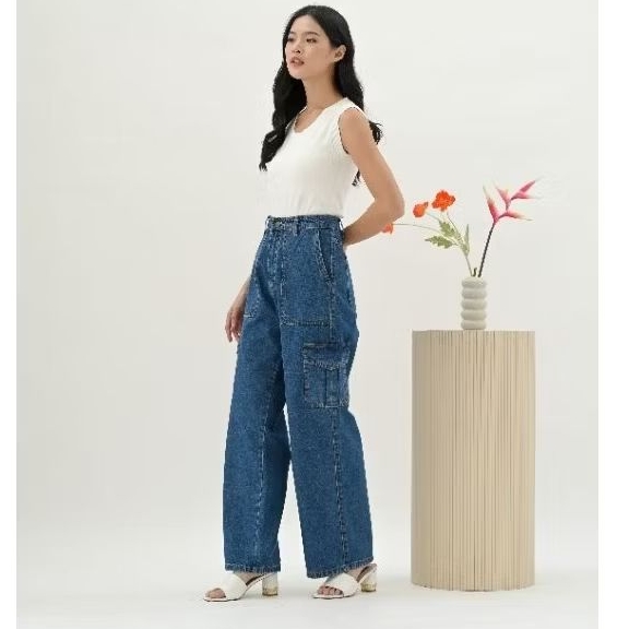 trinitas jeans cargo 601 highwaist loose wanita / kulot kekinian